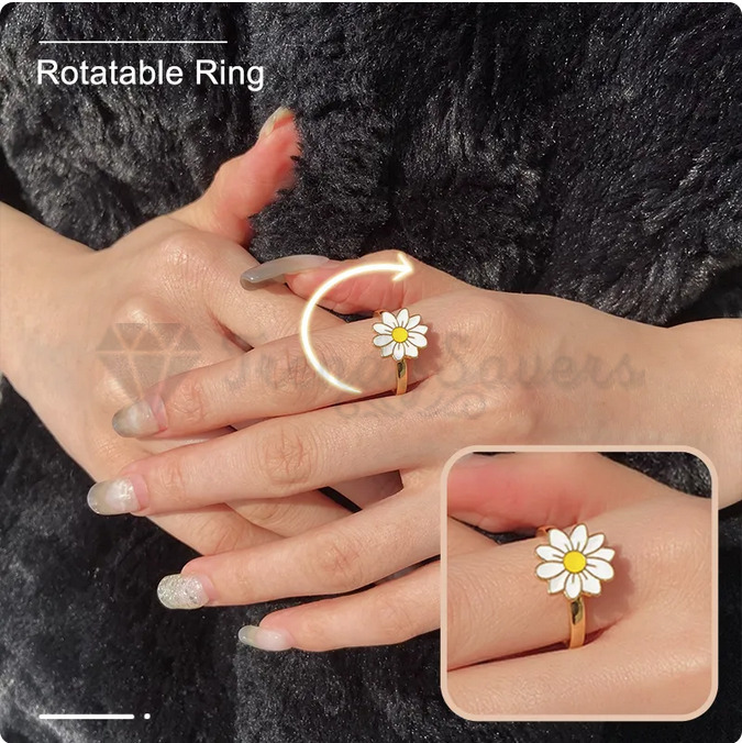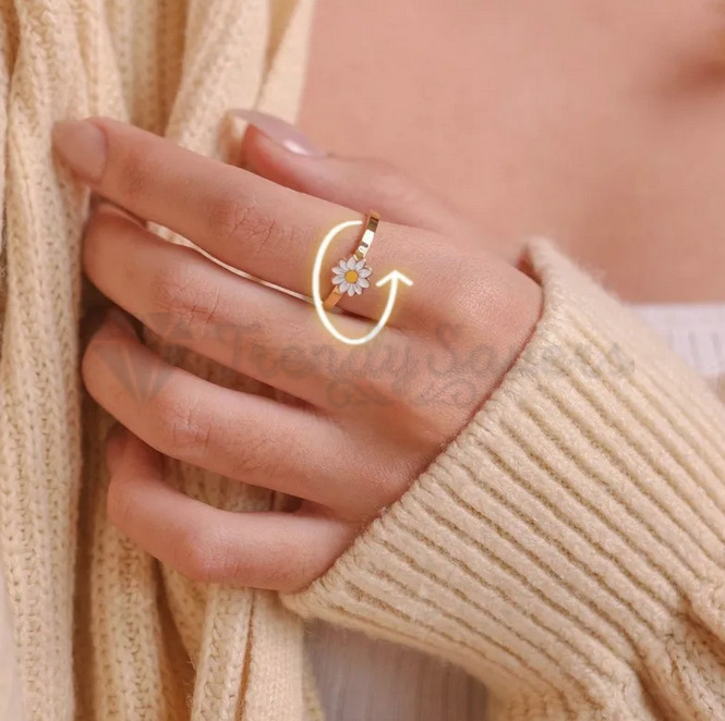 • Stylish Stress Relief: Elevate your accessory game with the Daisy Spinner Ring, which not only adds to your look but also serves as a stress-relief spinner. Crafted with high-quality 18K Gold Plated material, this ring features a rotatable design that aids in anxiety reduction, stress relief, and improved concentration. • Thoughtful Gift: This uniquely designed spinner ring is a fantastic gift choice for a range of special people in your life – your wife, daughter, mom, sister, girlfriend, best friend, or even yourself. It's premium quality and stylish design makes it a meaningful present that adds color and joy to their lives. • Versatile Elegance: With its fashion-forward design and smooth surface, this ring is perfect for both daily wear and special occasions. Whether you're headed to a cocktail party, a birthday celebration, or a casual day out shopping, this jewelry adds a touch of elegance. • Your satisfaction is our top priority. We offer a 60-day money-back guarantee or exchange, ensuring that you can purchase this daisy spinner ring with confidence. Embrace the beauty and charm of this daisy spinner ring and enjoy the compliments it brings wherever you go.