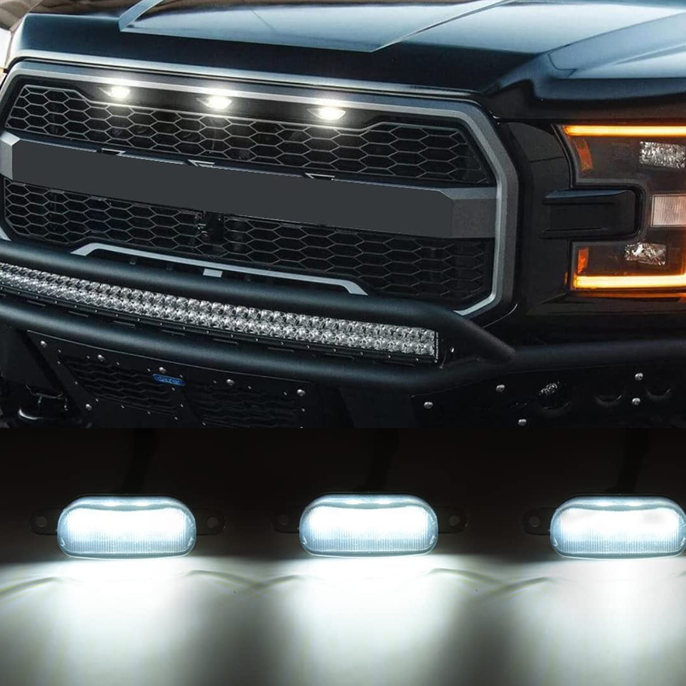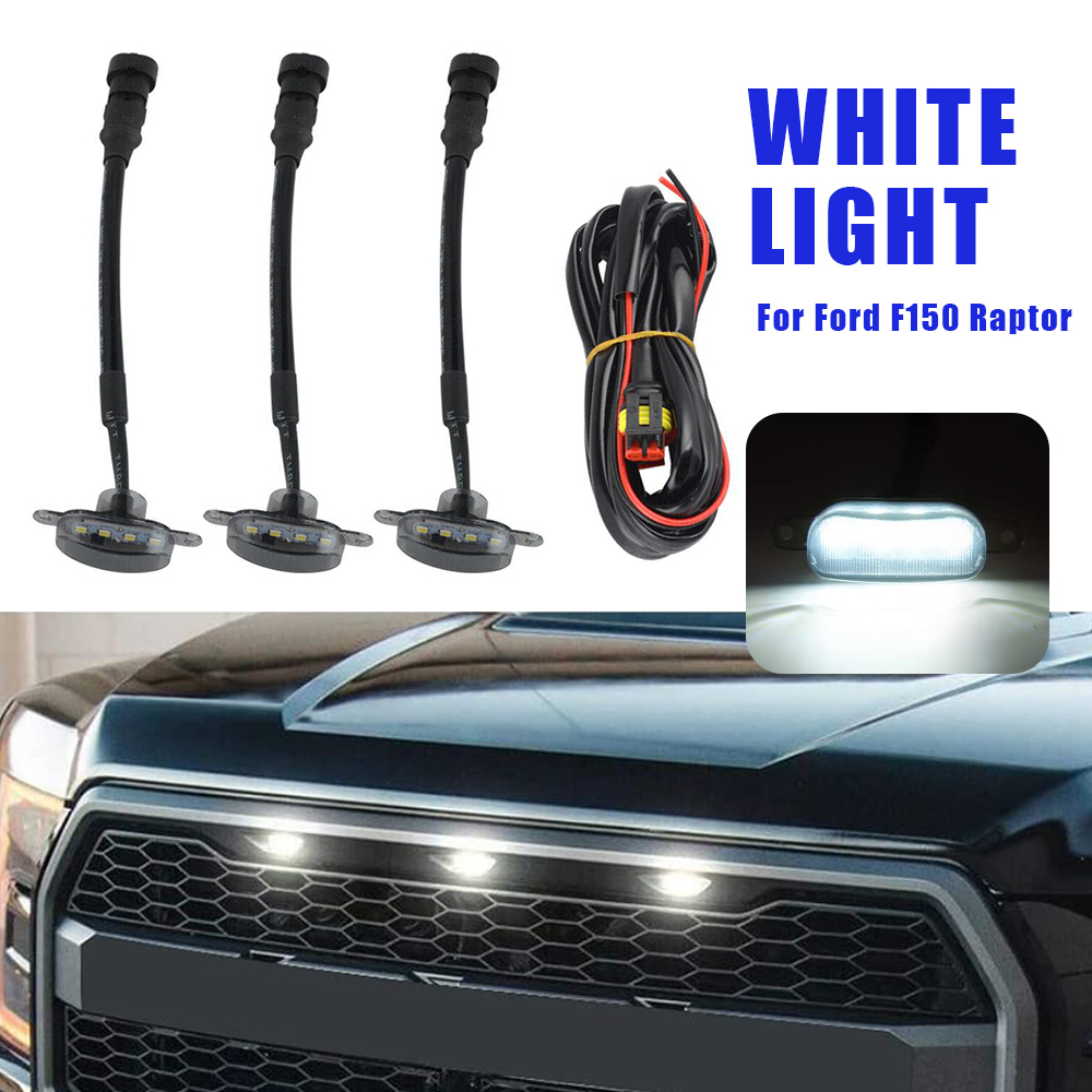 For Ford F-150 Raptor Front Grille 3pcs Smoked White LED Lamp Running Light