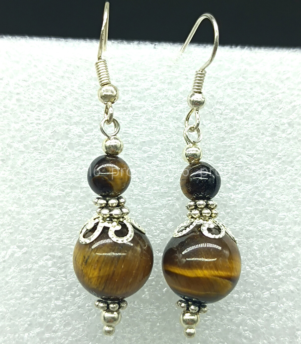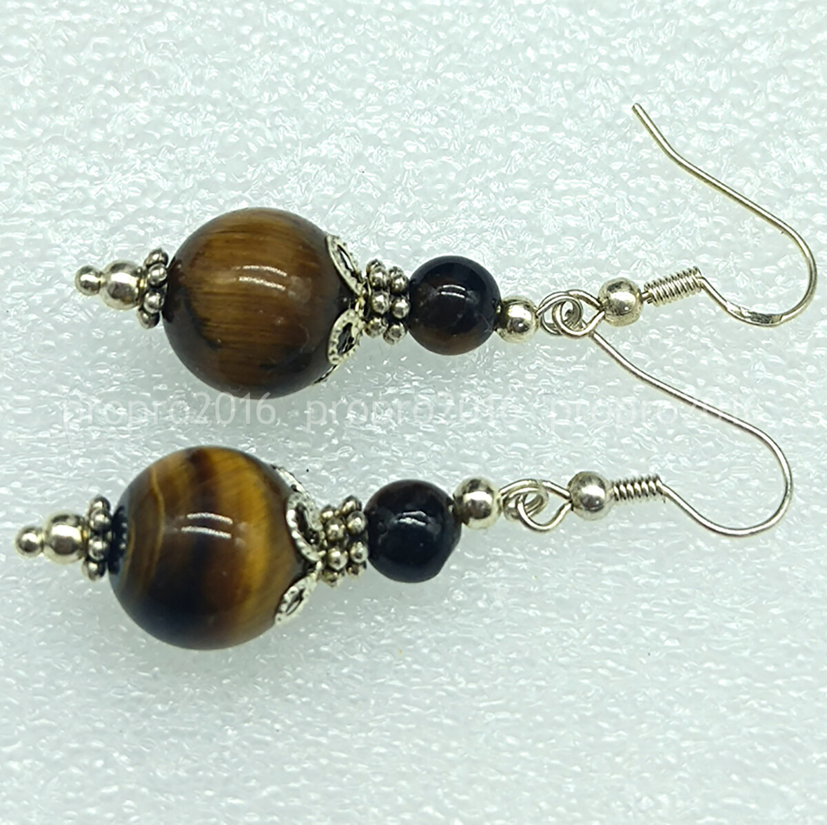 Natural Yellow Tiger's Eye 6-12mm Round Gems Beads Dangle Silver Hook Earrings