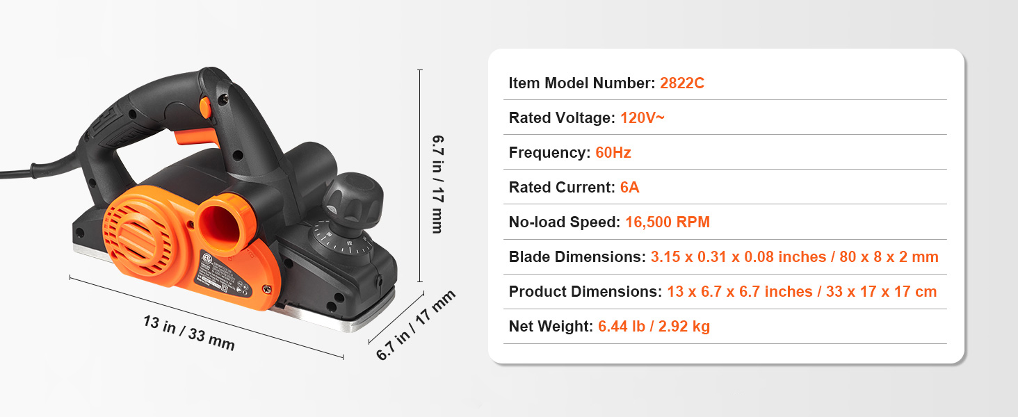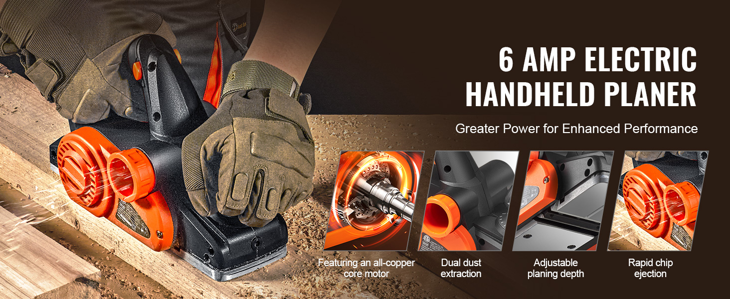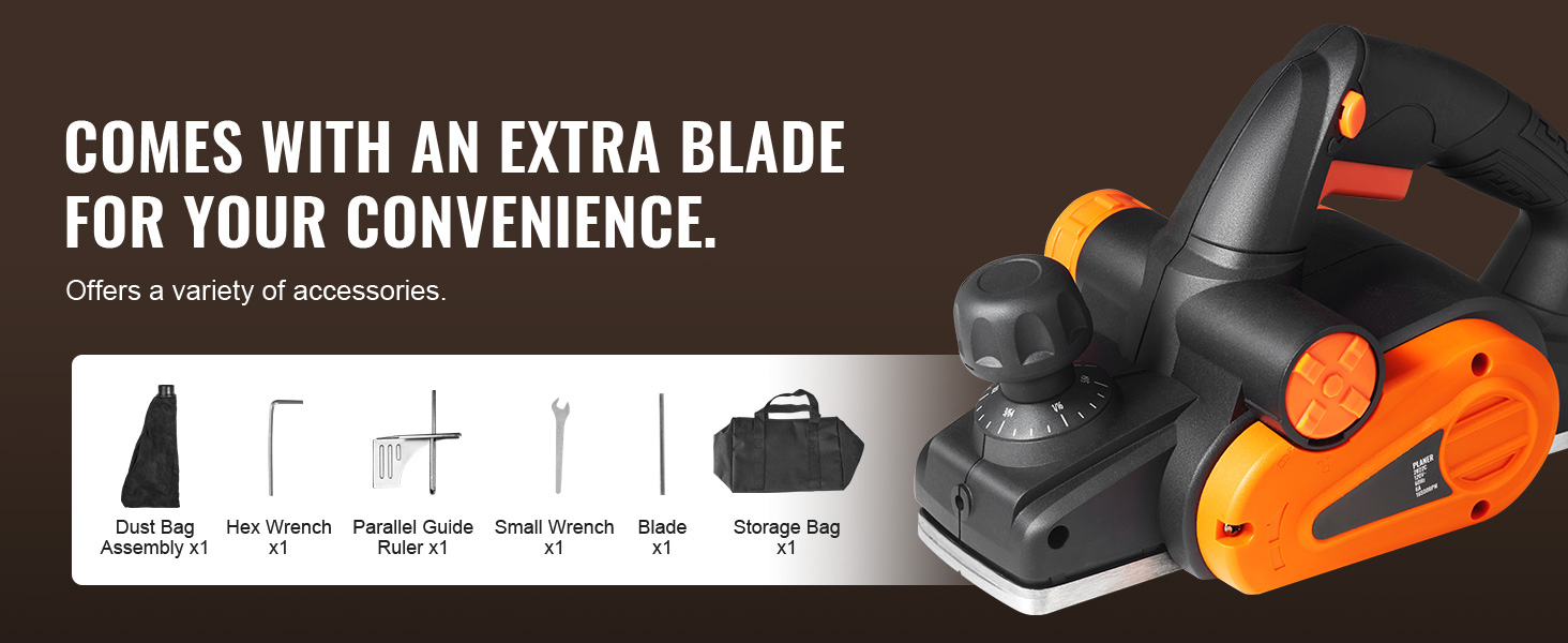 Designed with dual dust extraction slots, both sides of this electric handheld planer can accommodate dust collection bags, allowing compatibility with a vacuum cleaner for more flexible dust collection. Keep your workspace consistently clean and tidy.