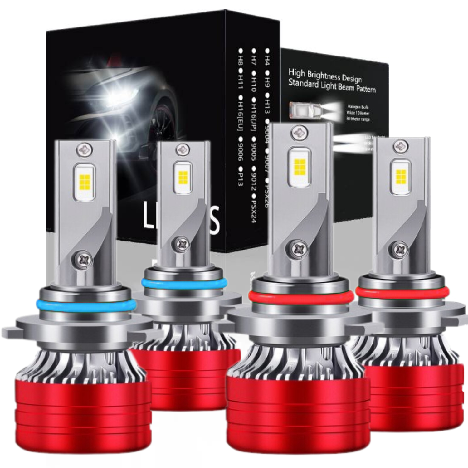 2 x 9005 High Beam + 2 x 9006 Low Beam LED Headlights Bulbs