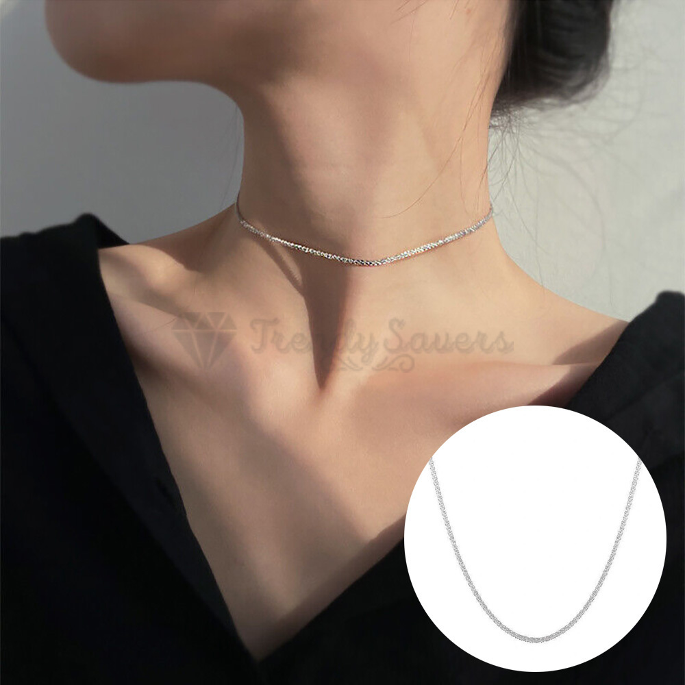 1x Clavicle Chain Choker Necklace for Women 925 Sterling Silver Party Jewellery