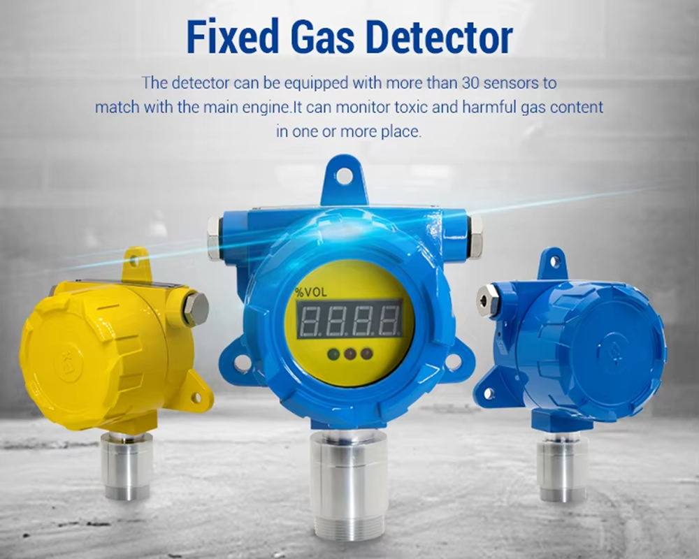 Fixed gas detector adopts advanced catalytic gas sensor or electrochemical sensor, which can translate the gas concentration in the air to the digital signal output. The detector working with gas controller can be used to detect gas in refinery, chemical plant, LPG station, boiler room, painting plant and other places with gas exists.