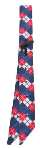 Showman Nylon Off Billet w/ Plaid Design. This billet features premium quality woven 2-ply soft nylon with 4 pre-punched holes. Pattern features a plaid design with hot pink, turquoise, gray and white colors. Measures 18" x 1.75".