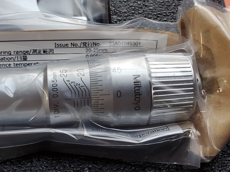 Brand new. Micrometer is factory sealed with calibration certificate. Made in Japan in 2023.