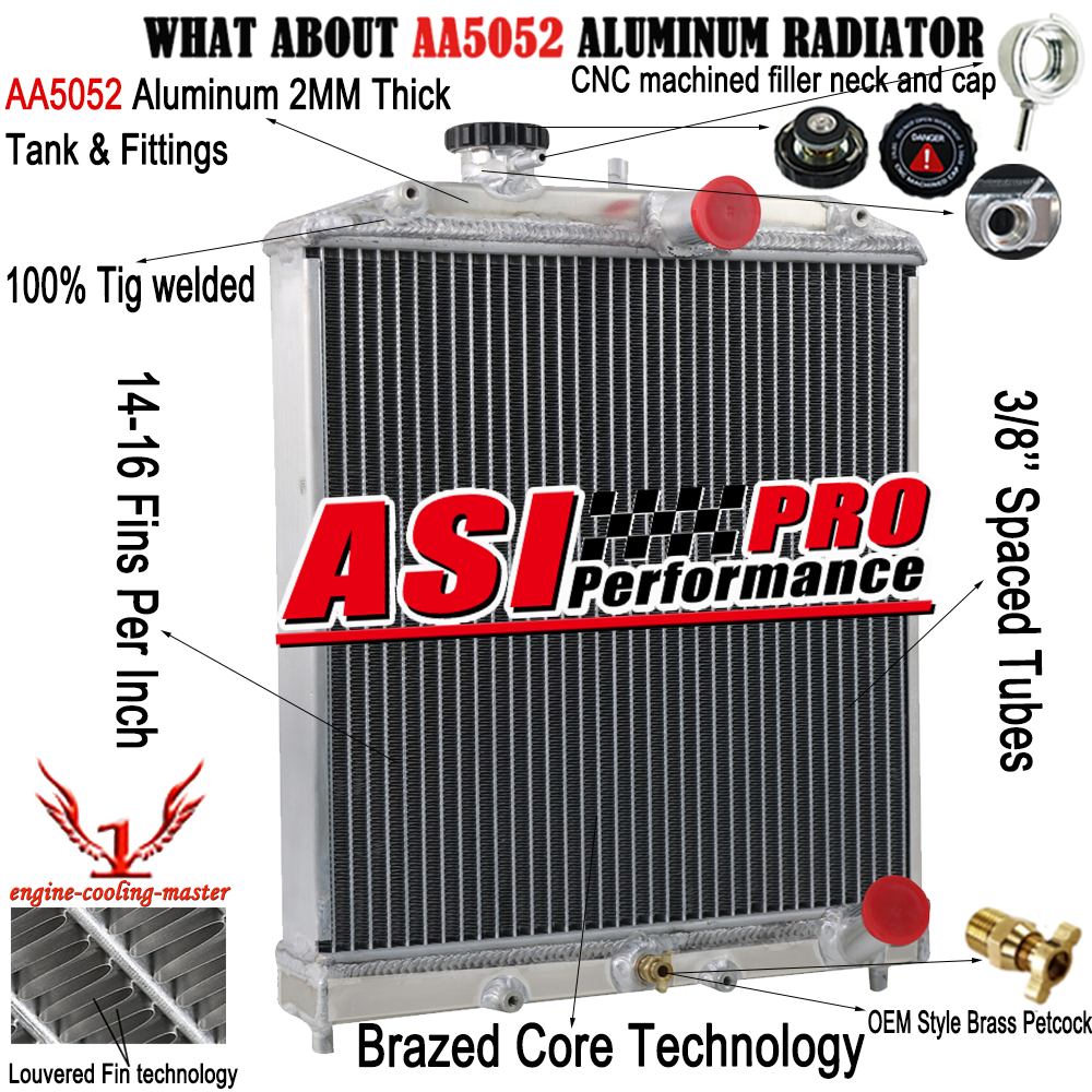 Our Radiator is made of AA5052 aircraft aluminum. It’s different from other sellers T-3303 Series. In fact, AA5052 series Aluminum is much better than T-3303 series.