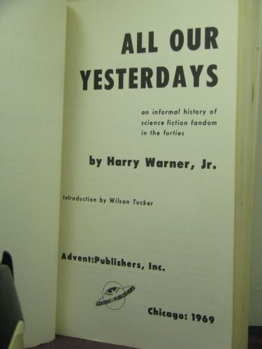 Harry Warner, Jr., an active fan for more than years, has written this history of fandom in the 1940's, with some excursions into earlier times to round out the picture. He plans another book to cover the 1950's.