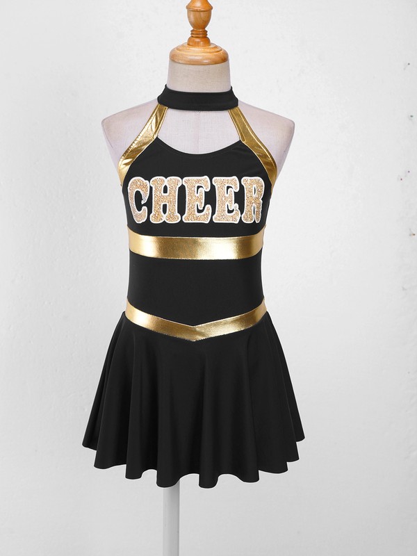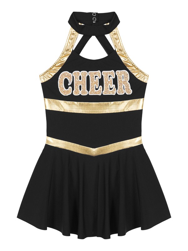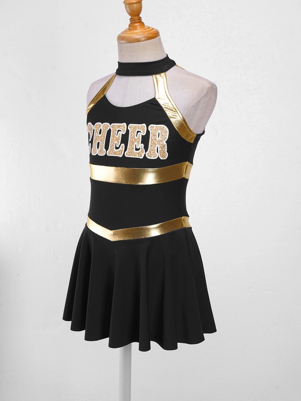 Letter “CHEER” print in the front, with shiny bronzing cloth patchwork, briefs inside for wearing safely.