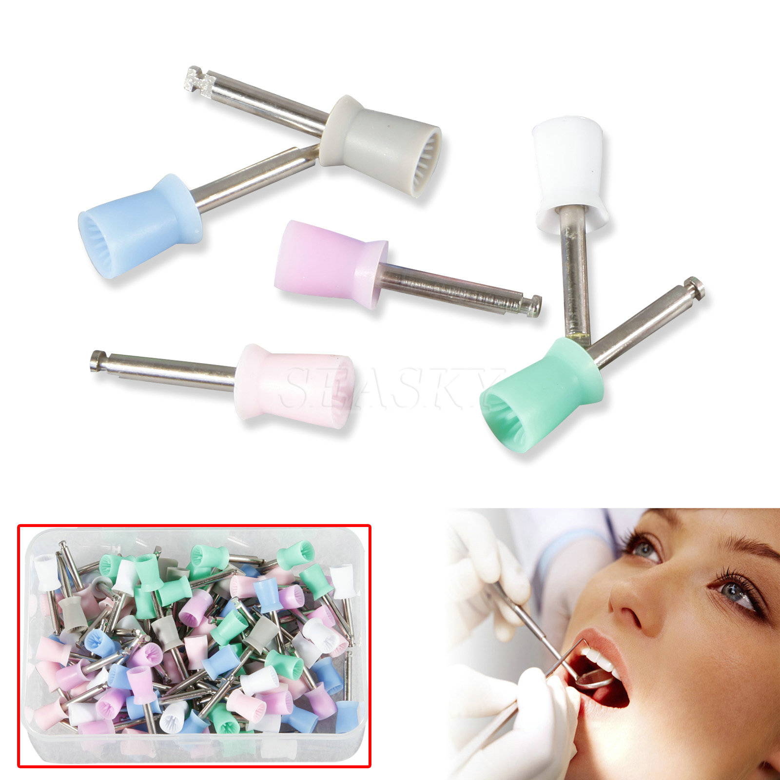 100 PCS Dental Prophy Cups Rubber Polisher Polishing Tooth Latch Type 6 Colors