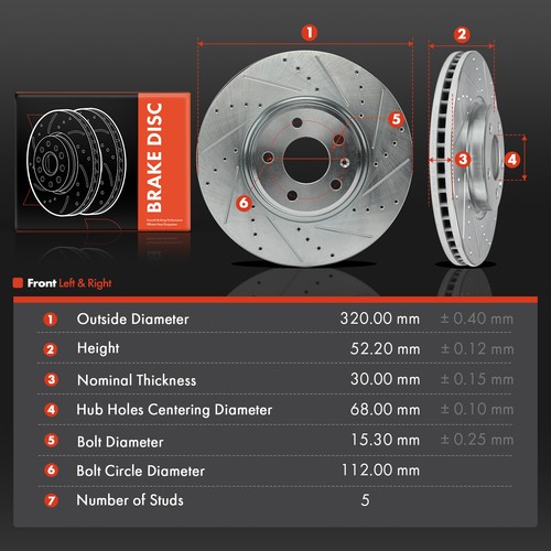 Drilled Brake Rotors for Audi A5 2012-2015 A4 2012-2016 A6 Q5 S5 allroad Front