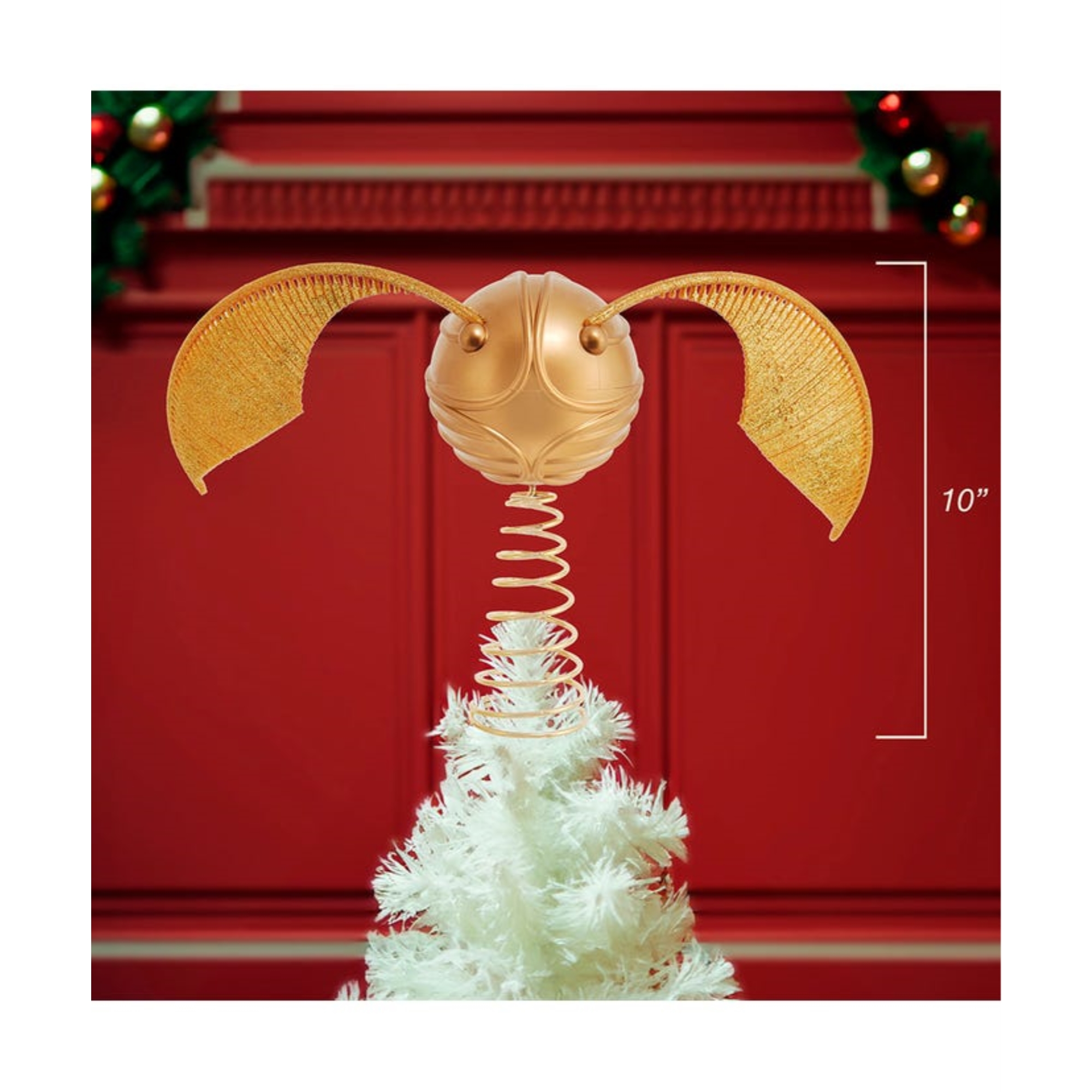 Illuminate your Christmas tree with the radiant charm of Kurt Adler with this Harry Potter Quidditch Snitch Tree Topper. This eye-catching snitch tree topper features the famous quidditch ball from Harry Potter in its true walnut color sphere with glittery golden wings. A fun addition to have for your holiday décor, especially for fans of the wizard world and want to add a bit of magic to their Christmas tree.