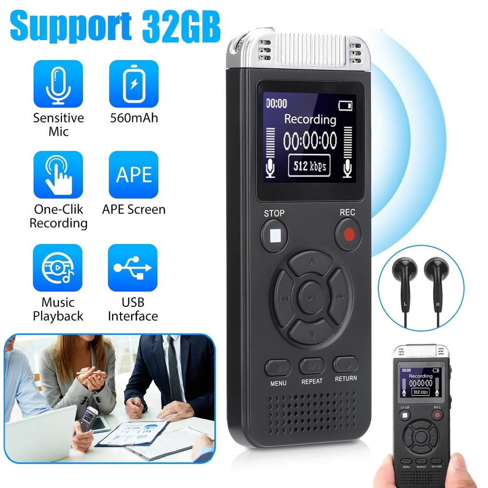 Features Clear PCM Recording: Adopts upgraded noise cancelling microphone with professional recording chip. Capture 1536Kbps premium quality sound. Voice recorder with playback function, which is well designed for the users to easily access. 32GB Digital Recorder: stores 2324hours of recording, or 10,000songs, up to 50 hours of continuous recording with a full battery. Recording can be pre-set into mp3 128kbps,192kbps, or wav 1536kbps format. A wonderful voice recording device for lectures, meetings, and conversations. Voice Activated Recorder: Setting the VOR voice-activated function. Regardless of the level of the volume, with the correct voice decibel level, the listening device catches the speaking words only. No more silent whispers or snippets in your recordings. Effectively saving the memory space and your listening time. Transfer File to Computer & OTG: Simple charge or transfer recordings to computer easily via supplied Micro type-C cable, you could playback, delete and rename the recording files, download music and more on your computer, it is a useful gift for students, professors, teachers, businessman, and anyone who loves to record. Also, it supports the use of an OTG conversion cable to operate the files on your phone directly. (Only available for Android smartphones with OTG download function) Easy To Use and Multi-function: Easy to figure out. Simple three-button to record, save and playback, make you never miss any important content with it! Optimized Menu Choice for a more intuitive navigator, tape recorder has all the functions you want, A-B repeat, fast forward, rewind, 3.5mm headphone plug, mp3 player, variable speed playback, password and timing auto recording, etc. It’s a perfect recorder for lectures, meetings, interviews, speeches, class.