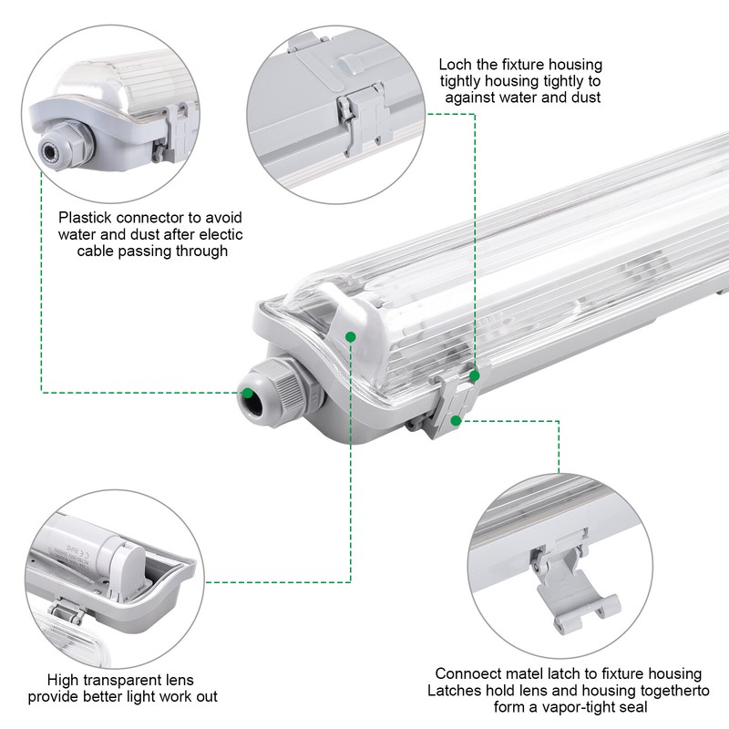 Breites Einsatzspektrum: LED-Feuchtraumleuchten können in Innen- und Außenbereichen, Fabriken, Werkstätten, Lagern, Kellern, Parkplätzen, Innenräumen mit hoher Luftfeuchtigkeit und Staub weit verbreitet eingesetzt werden.