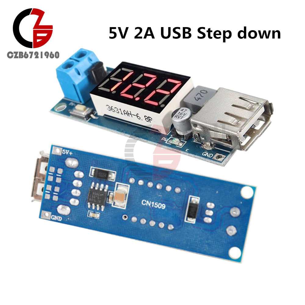 2 x DC 4.5-40V To 5V 2A USB Charger DC-DC Step-down Convert Voltmeter Module