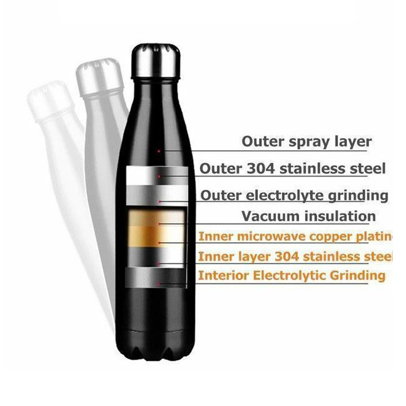 High grade quality stainless steel construction with unique double-wall vacuum insulation technology and vacuum-seal cap.