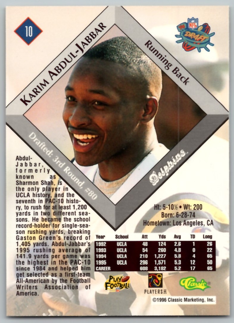 | 1996 Classic NFL Rookies 10 Karim Abdul-Jabbar |