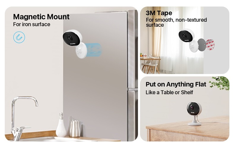 Use magnetic base or 3M tape to mount your cam anywhere you like.
