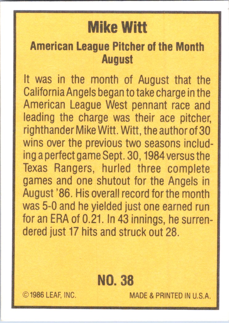 | 1986 Donruss Highlights 38 Mike Witt |