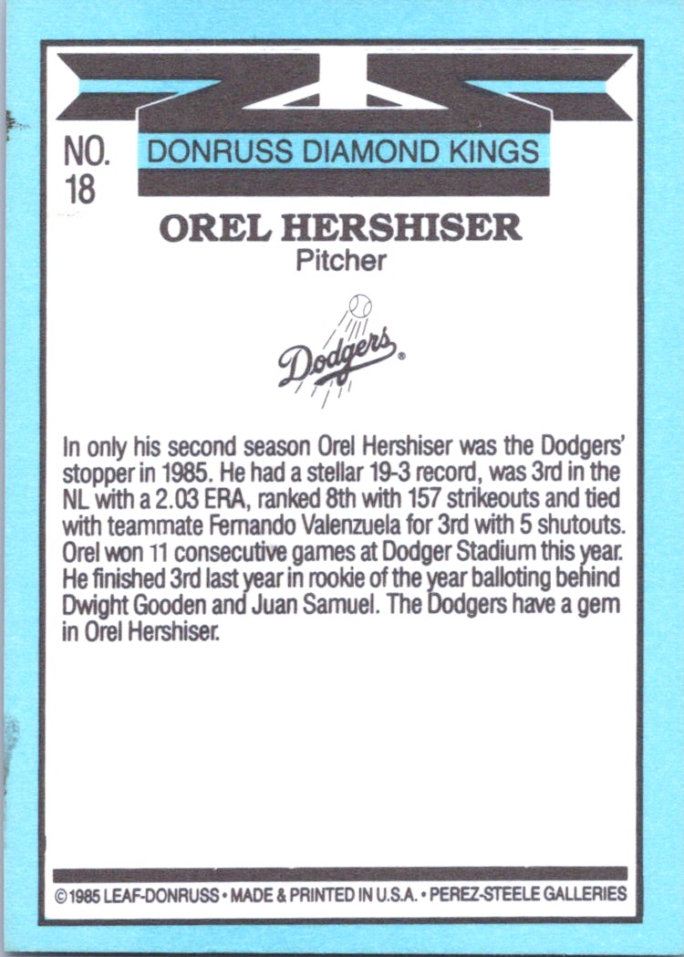 | 1986 Donruss Diamond Kings 18 Orel Hershiser |