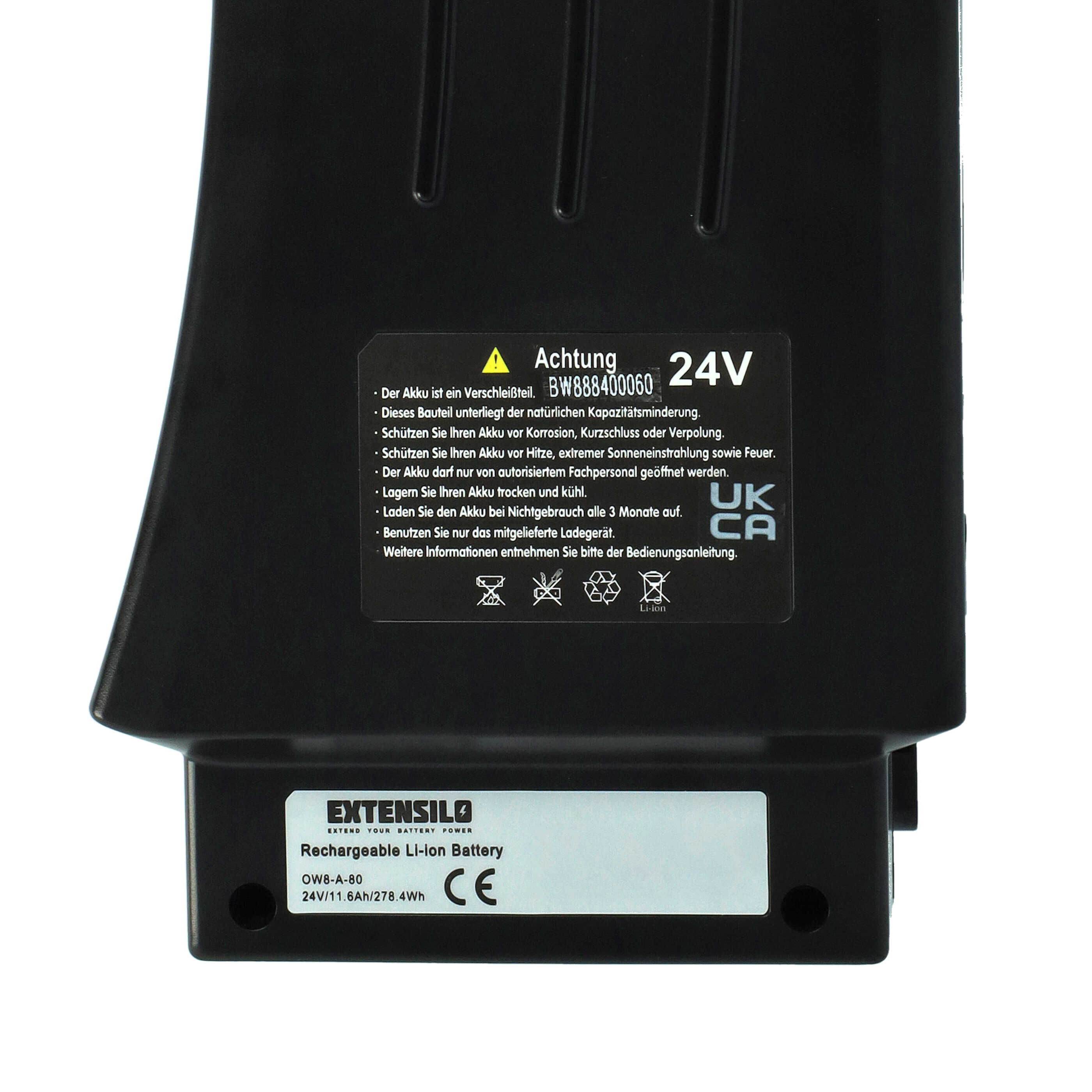EXTENSILO leistungsfähiger Akku passend für Samsung SDI-2510B, SDI Side-Click 24V, SDI-2511A Akku für Pedelec, Elektrofahrrad, E-Bike (Li-Ion, 11600mAh, 24V)