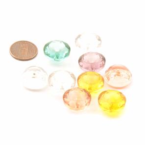 (9) antique Czech hand molded and hand faceted art glass rosarian button elements. These would be finished with rosarian shanks. Rosarian: a term adopted for glass buttons with a hole through the centre like a bead. the shanks were usually made of brass wire, which was run through the hole, both ends being fastened to the knob on top. Most were finished with a loose metal ring around the shank. (Luscomb: Encyclopedia of Buttons).