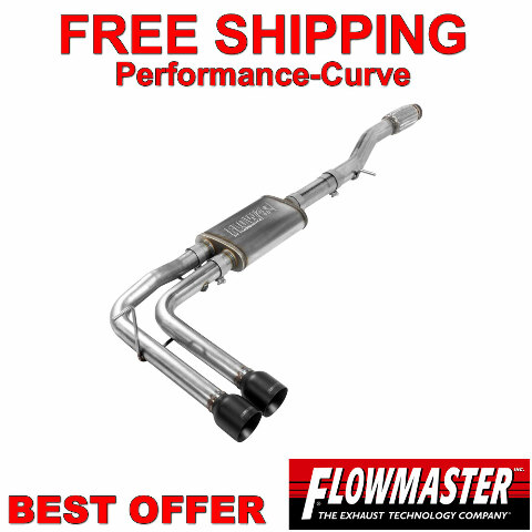 Introducing Flowmaster's new line of Flow FX Cat-back exhaust systems for the 2014-2019* (*Classic body) Chevrolet Silverado 1500 and GMC Sierra 1500 Crew Cab and Double Cab models with 4.3L and 5.3L engine. This Flow FX system is perfect for the person looking for a moderate to aggressive exterior and interior sound level with all of the performance benefits that you would expect from Flowmaster. Features include 409S stainless steel mandrel-bent tubing flowing into a Flow FX straight-through performance muffler for maximum power and a deep aggressive sound. The dual 2.50-inch tailpipes are finished off with large 4.00-inch black ceramic coated 304 stainless steel tips exiting in front of the rear passenger tire for that muscle truck look. Designed for easy installation, this system includes all necessary parts, hardware and detailed instructions.