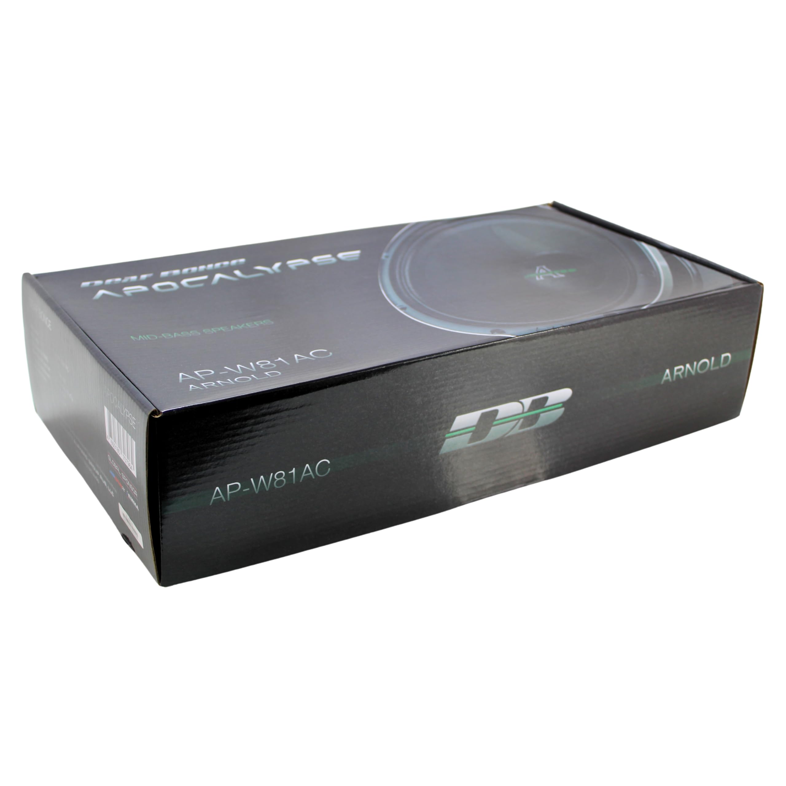 Enhance your audio experience with the Deaf Bonce Apocalypse AP-W81AC 8" Mid Bass Speakers. This listing includes a pair of speakers, each capable of handling 600W MAX power. Designed as midrange speakers, they provide powerful and clear midrange frequencies, making them perfect for various audio applications. With premium construction featuring a paper cone, ferrite magnet, and copper voice coil, these speakers ensure durability and high-quality sound reproduction. They offer a wide frequency response range of 70-5000 Hz and boast a 94.00 dB SPL for accurate and dynamic sound output. Whether for car audio systems, home theaters, or other audio setups, the AP-W81AC speakers deliver exceptional performance