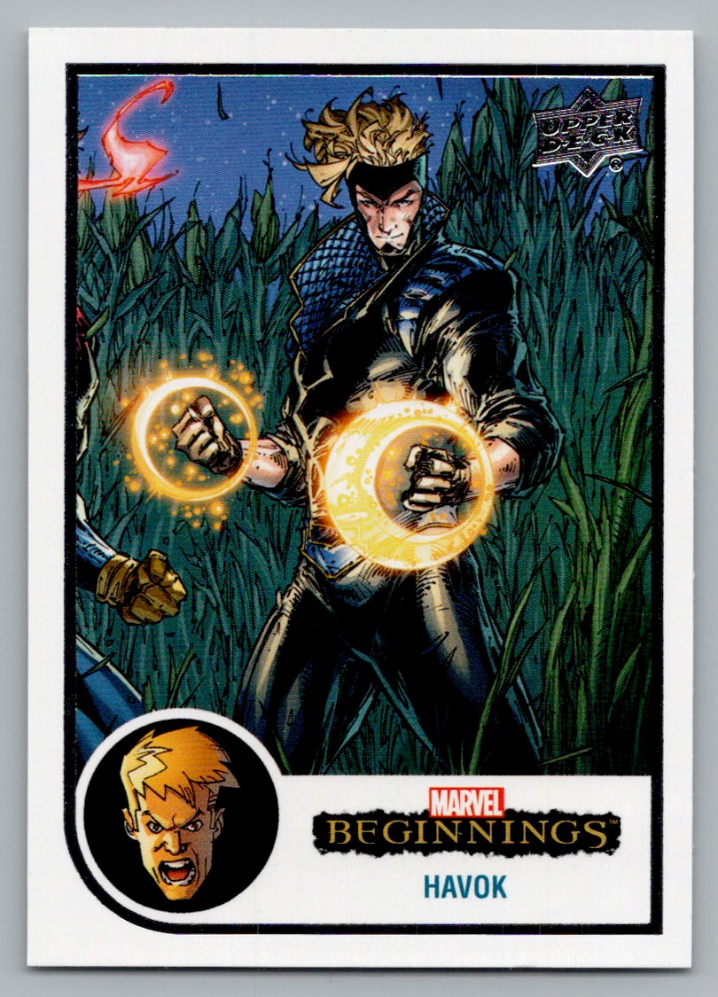 | Description: | Havok | | Category: | Other | | Year: | 2023 | | Product: | Marvel Beginnings | | Card Number: | 145 | | Dimensions: | 3½" x 2½" |