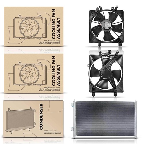 New AC Condenser & Dual Cooling Fan Assembly Kit for Honda Civic 2001-2005 1.7L