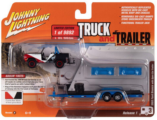 Sofort Kauf Johnny Lightning JLBT016A-3 Ford Bronco 1966 mit Autoanhänger Truck Trailer 1:64
