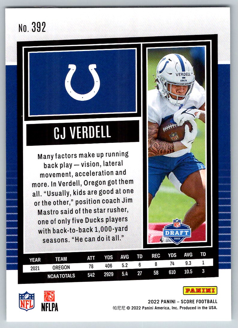 | 2022 Score 392 C J Verdell |