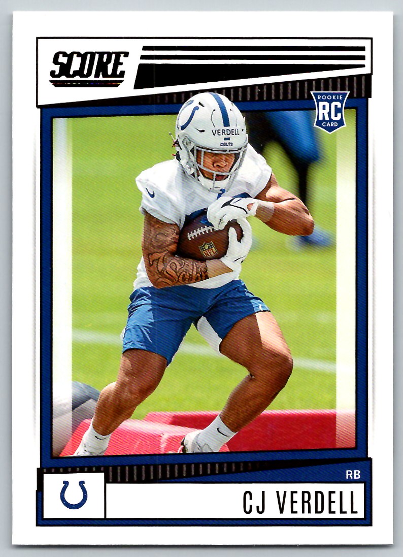 | Description: | C J Verdell | | Category: | Football | | Year: | 2022 | | Product: | Score | | Team: | Indianapolis Colts | | Card Number: | 392 | | Rookie: | Yes | | Dimensions: | 3¼" x 2¼" |