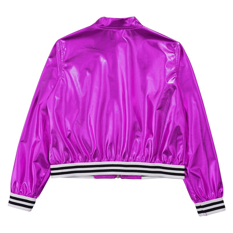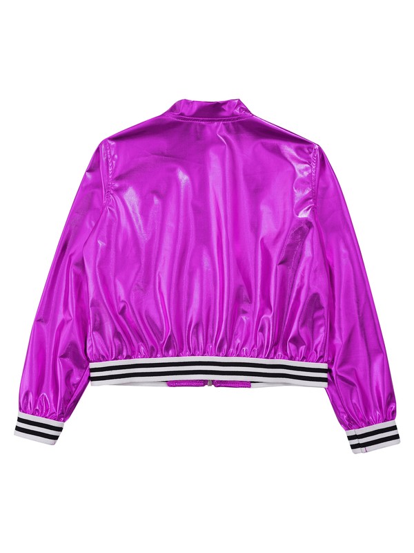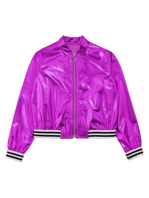 The outerwear with long sleeve and stand collar, shiny bronzing cloth outlook.