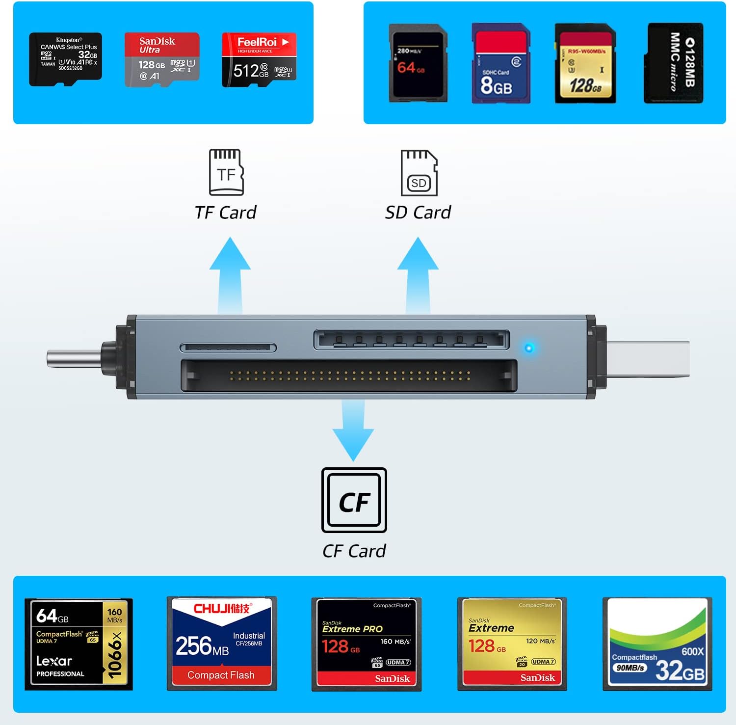 When connecting to usb-c tablets/phones, please kindly make sure that the device supports OTG function and memory card file format should be FAT32/EXFAT.