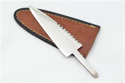 This is a great opportunity to purchase a Handmade Sheffield Carbon Steel Sgian Dubh Blade. The Stainless Blades are forged in Sheffield, England our blades are hand forged in our factory. The blade measures 125mm in total, the tang measures 40mm. The blade width is 21mm and it weighs 30 grammes. The sheath is also genuine leather as you would expect and also made in England.