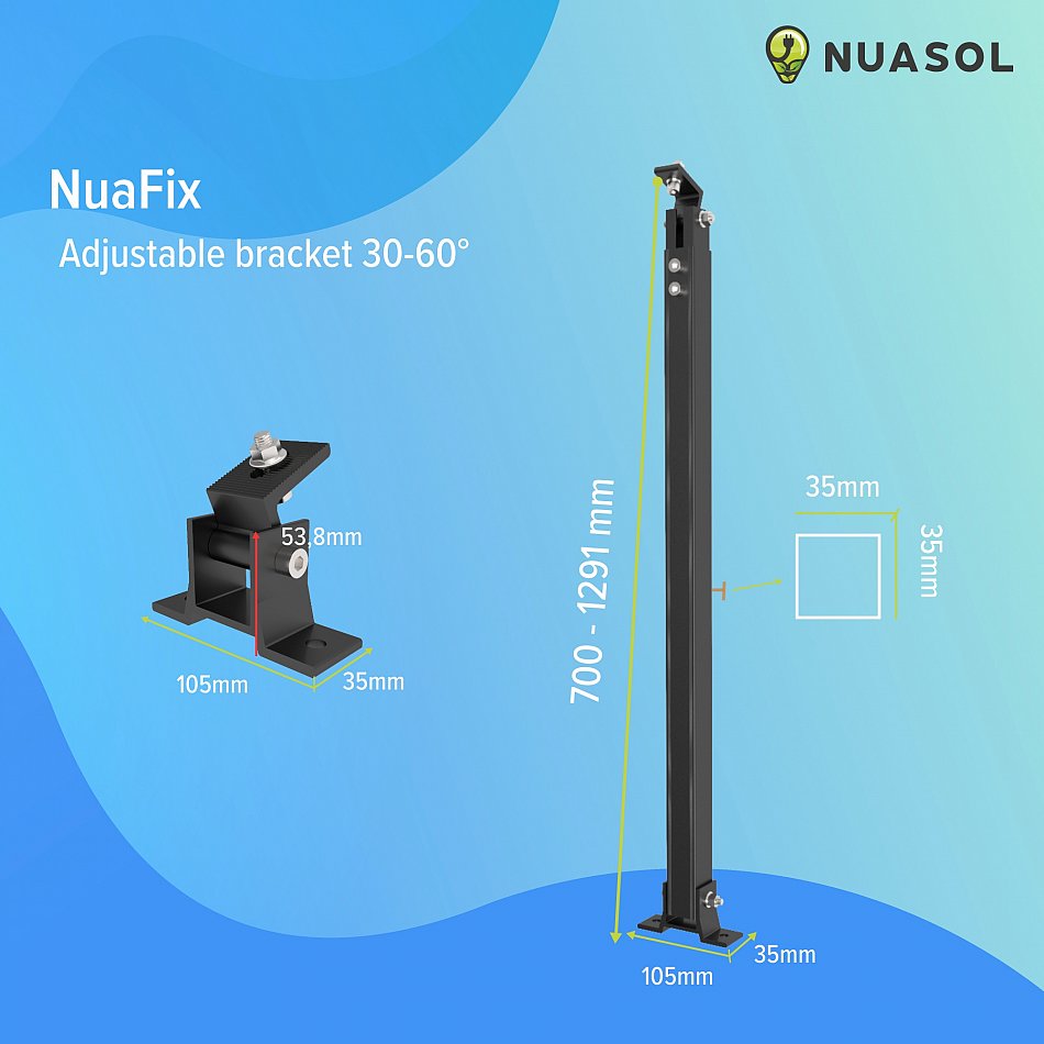 NuaFix - Staffe regolabili per pannelli solari per impianti fotovoltaici 30- 60° - Set di 2