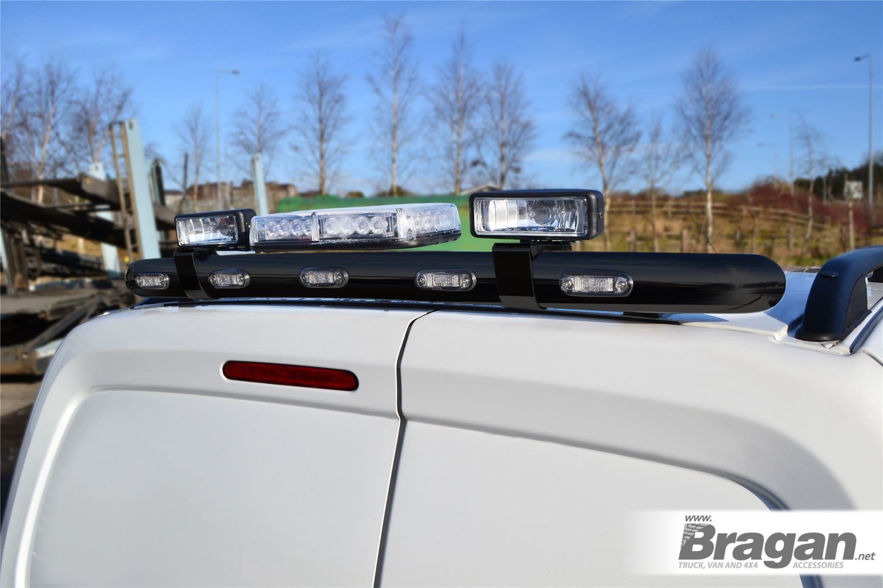High-quality Black Powder Coated Stainless Steel Rear Roof Bar + Flashing Beacon + Spots x2 + Flush LED 3 Functions Marker / Brake / Indicator Light x5 + Clamps x2 for Opel / Vauxhall Combo C (2001 - 2011 models). This top-of-the-range bar will have your vehicle looking top spec at a fraction of the cost of the genuine items but with the same high quality.