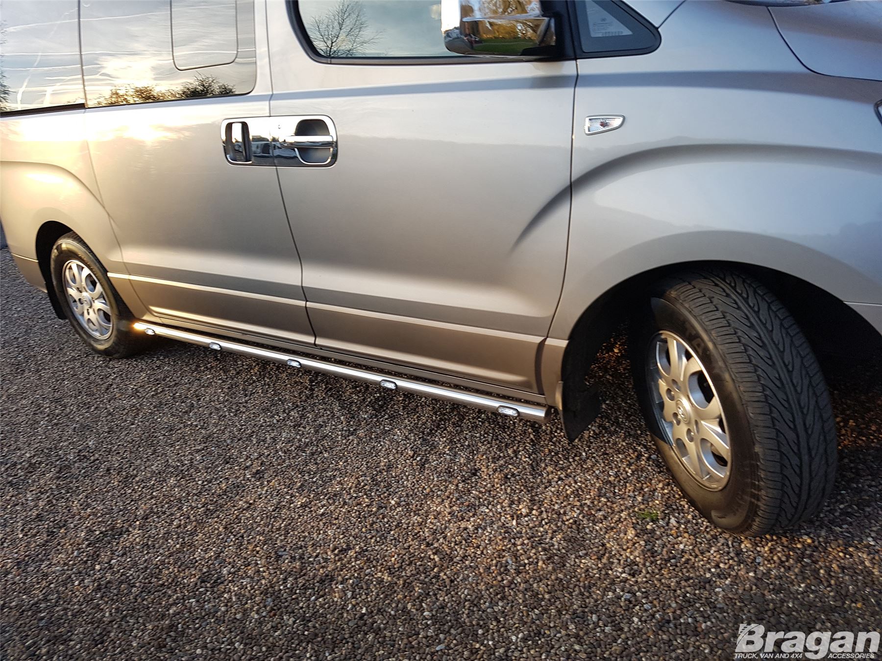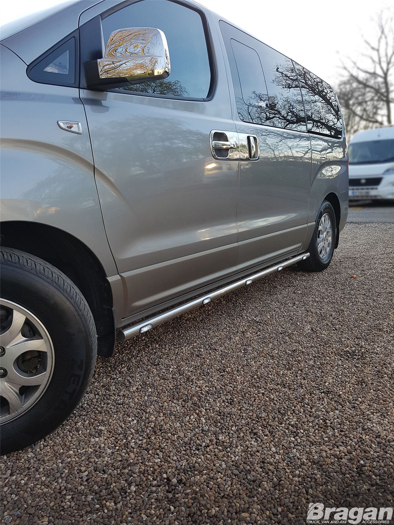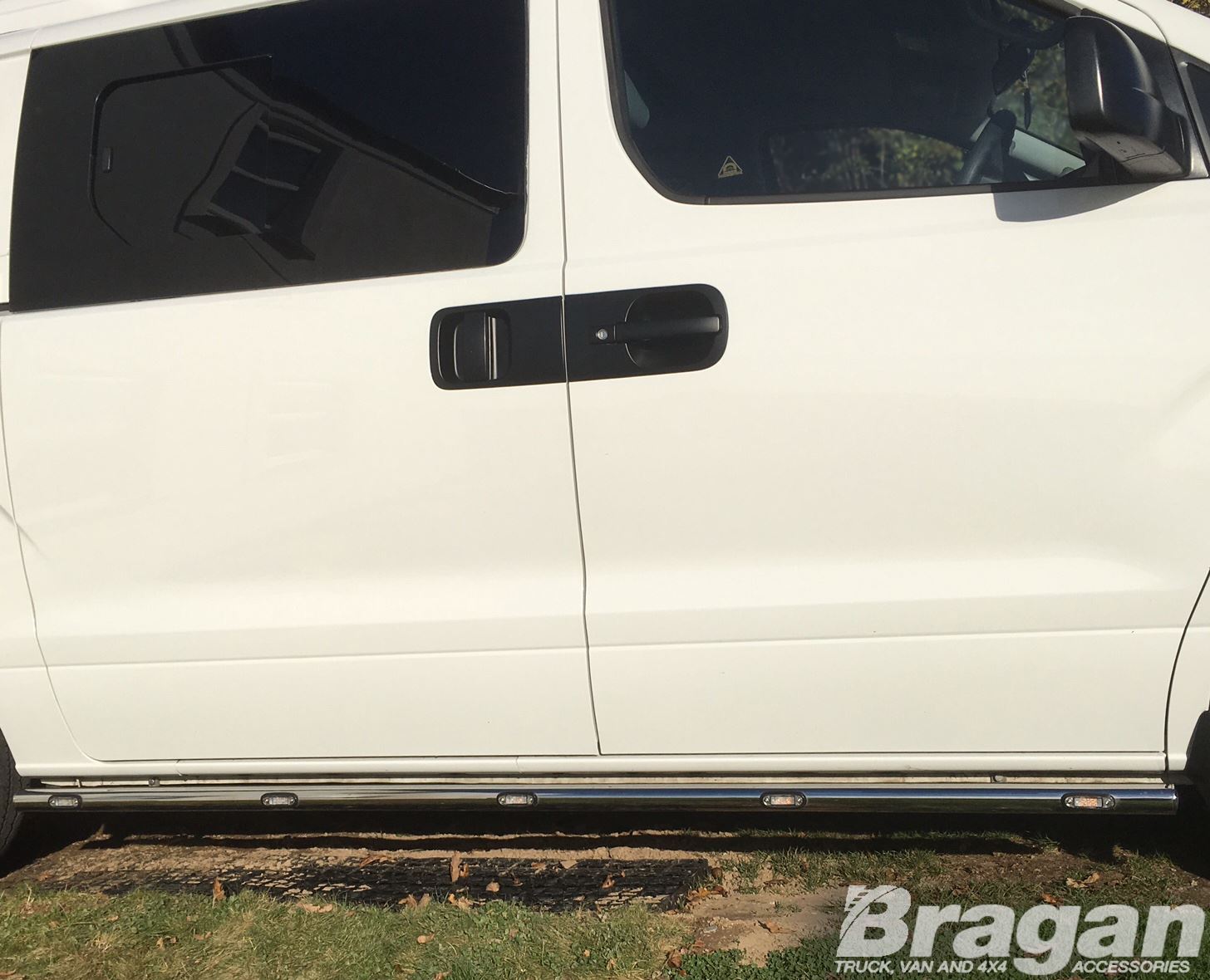 Original manufacturers quality Stainless Steel Side Bars + Amber LEDs x10 (5 per bar) to suit Hyundai i800 (2007+ model) (These fit all Hyundai i800 from 2007 to present model including iLoad and iCargo variants). These top of the range side bars will have your vehicle looking top spec at a fraction of the cost of the genuine items but with the same high quality.