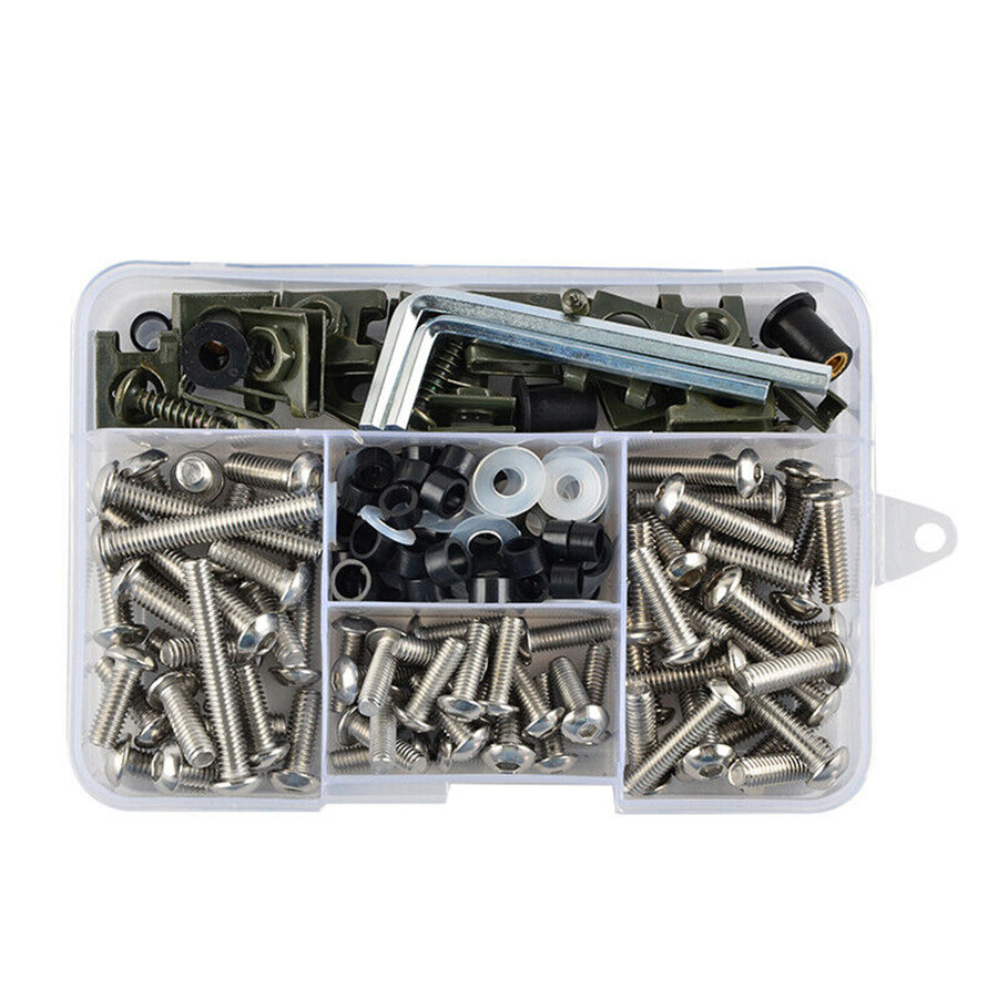 Universal Motorcycle Shell Fairing Bolt Plate Screws Nut Kit 155pcs Stainless Steel Thread Set