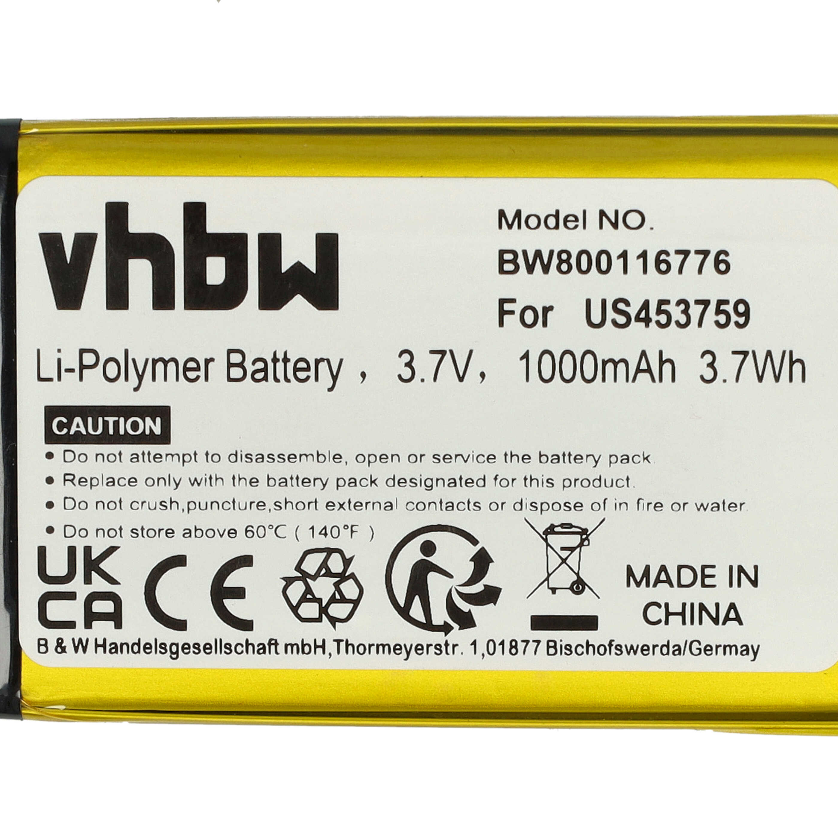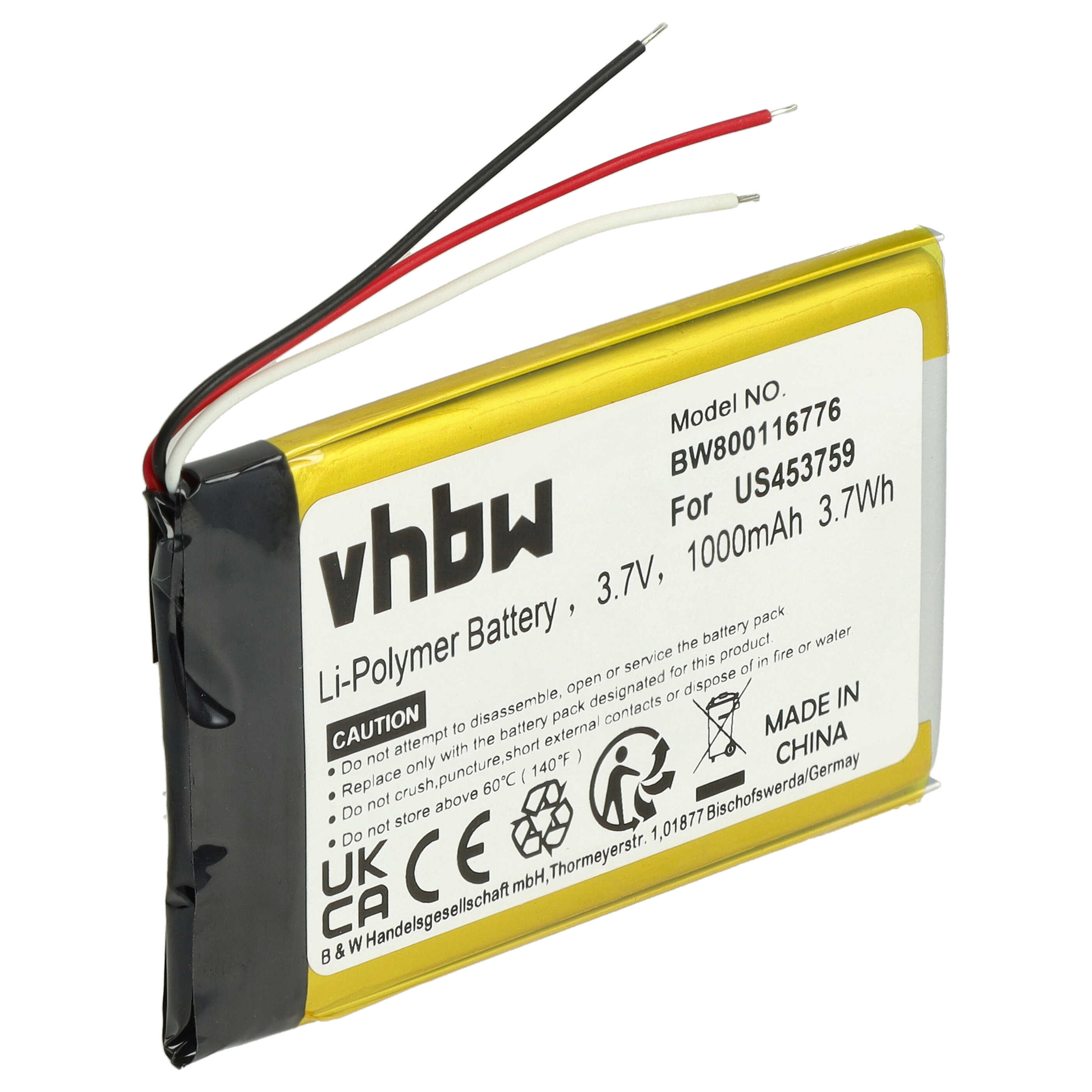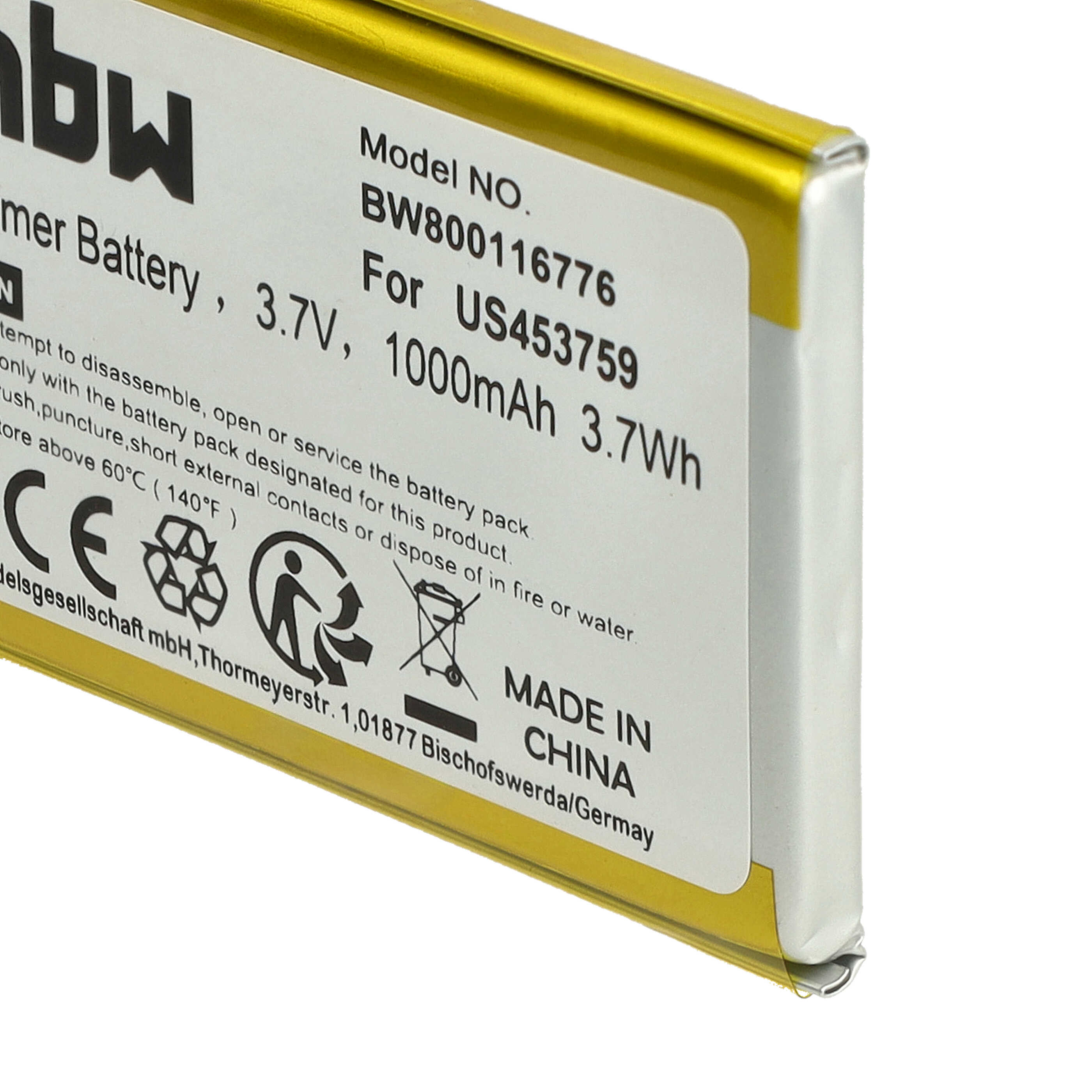 vhbw leistungsfähiger Ersatz-Akku für Sony MDR-HW700DS MP3-Player Musik-, Video- Player (Li-Polymer, 1000mAh, 3,7V)