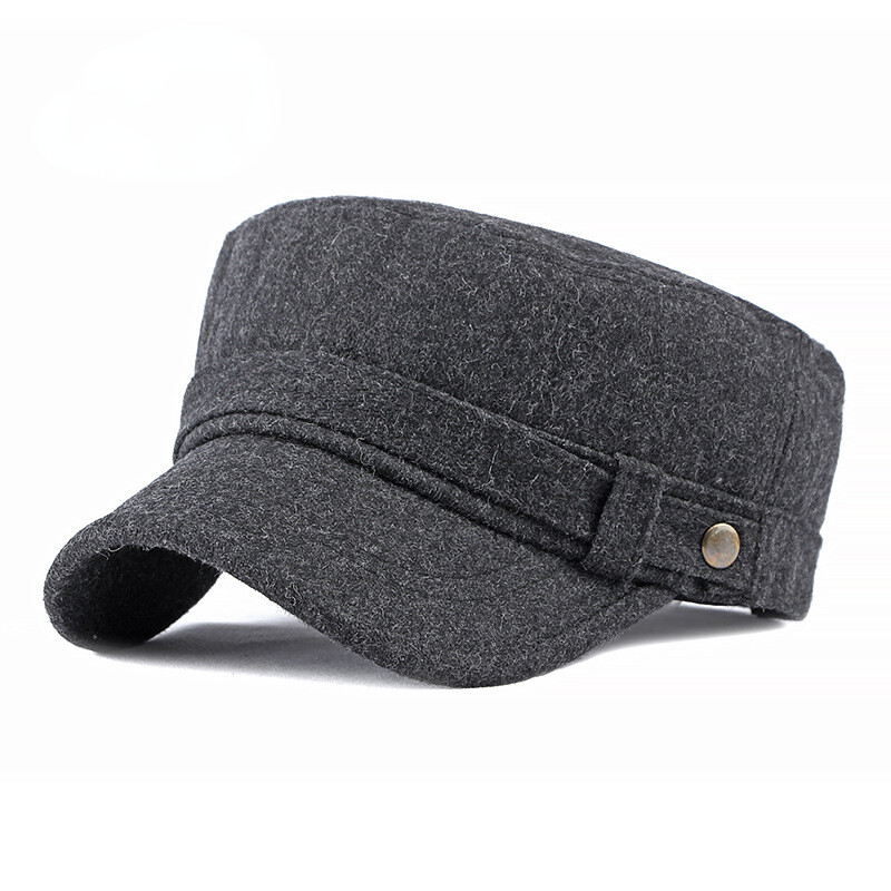 Mens Faux Wool Flat Top Baseball Cap Army Military Style Cadet Hat Adjustable