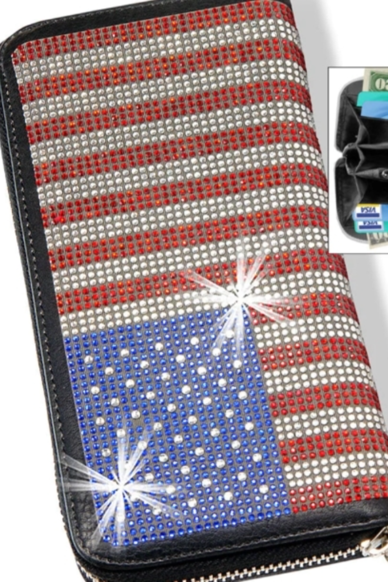 Add a little bling to your wallet. This zip around wallet is as practical as it is spectacular.