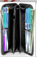 * Interior zip divider pocket, multiple currency slots & card slots.