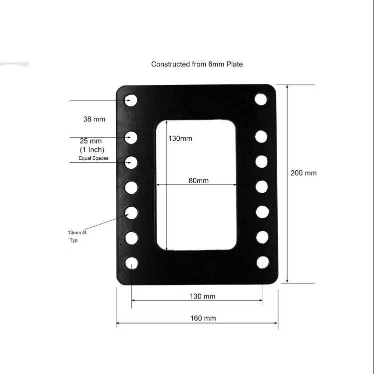 6 different chassis bolt-hole positions so it fits any Caravan or trailer A-Frame in Australia (6 inches, 5 inches, 4 inches or 3 inches)