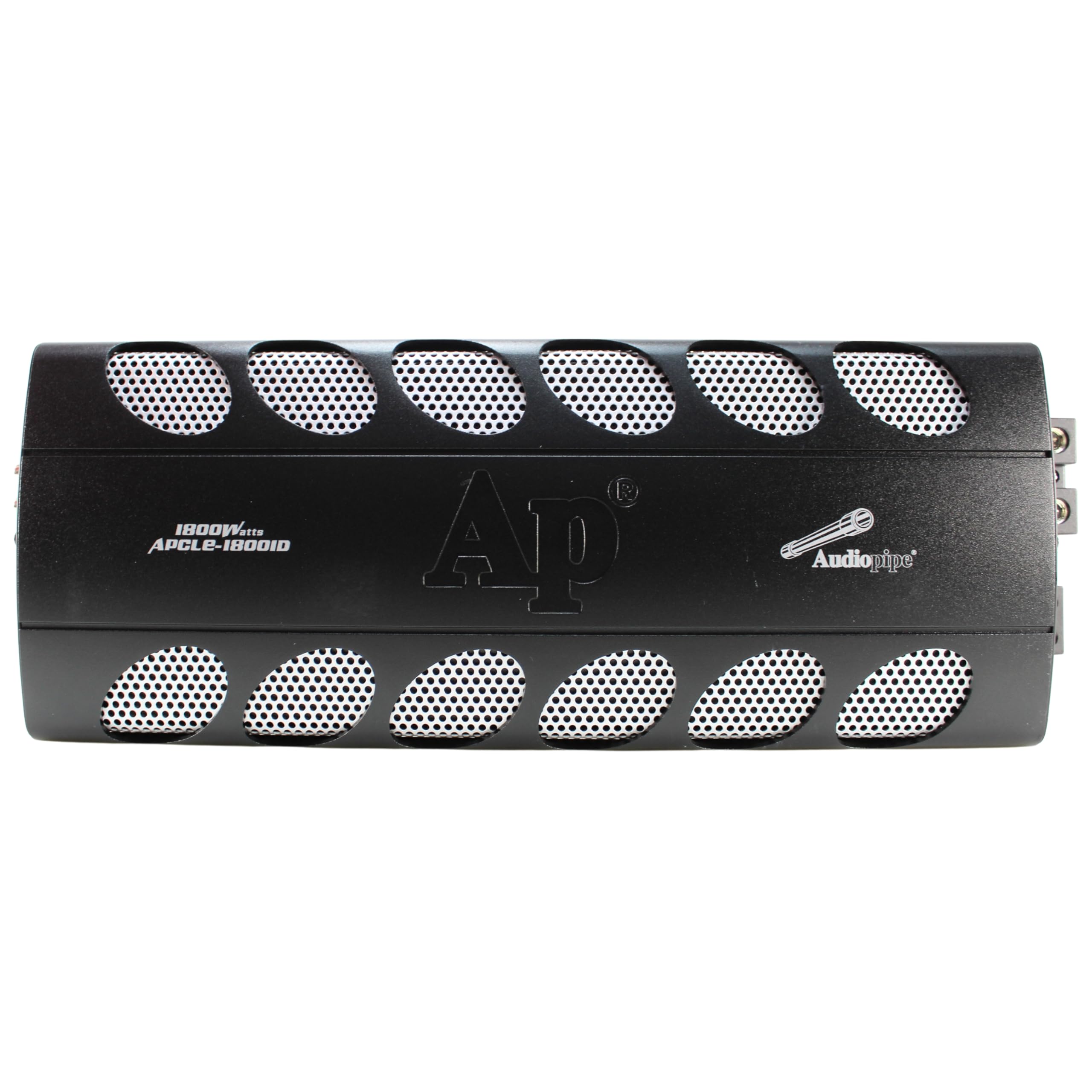 Universal APCLE Series Class D Mono 1800W Amplifier by Audiopipe. Boasting the latest in technology, this first-rate amplifier from Audiopipe is the finest piece of competition car audio gear that will take your listening experience to a whole new level. Full MOSFET circuit design allows to provide massive power without distortion at any volume. With this high-end amplifier, you sure to enjoy rich, heart-thumping bass with crystal clear sound quality.
