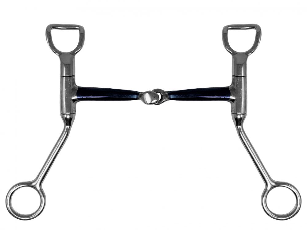 Showman Stainless Steel Sweet Iron Lock Up Bit. This western shank bit has a 5" sweet iron lock up mouth and 6.5" stainless steel cheeks.