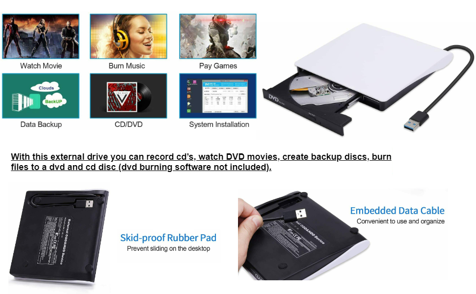 USB3.0 External Slot in USB CD DVD Drive / Burner for PC, mobile PC and Laptop via USB 2.0/3.0 USB interfaceplug and play.