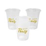 Fill these plastic cups with your favorite party cocktails and fizzy drinks! Clear and printed with "Let's Party" in joyous gold script, they're ideal for the bar at your wedding reception, or for pre-wedding celebrations like your bachelorette party. Supplies that coordinate with any party theme, they have a classic design you'll love. They also make life easier when you just toss them away at the end of the night; cleanup is simple! Plastic. (50 pcs. per unit) 4 1/2" 16 oz. © OTC