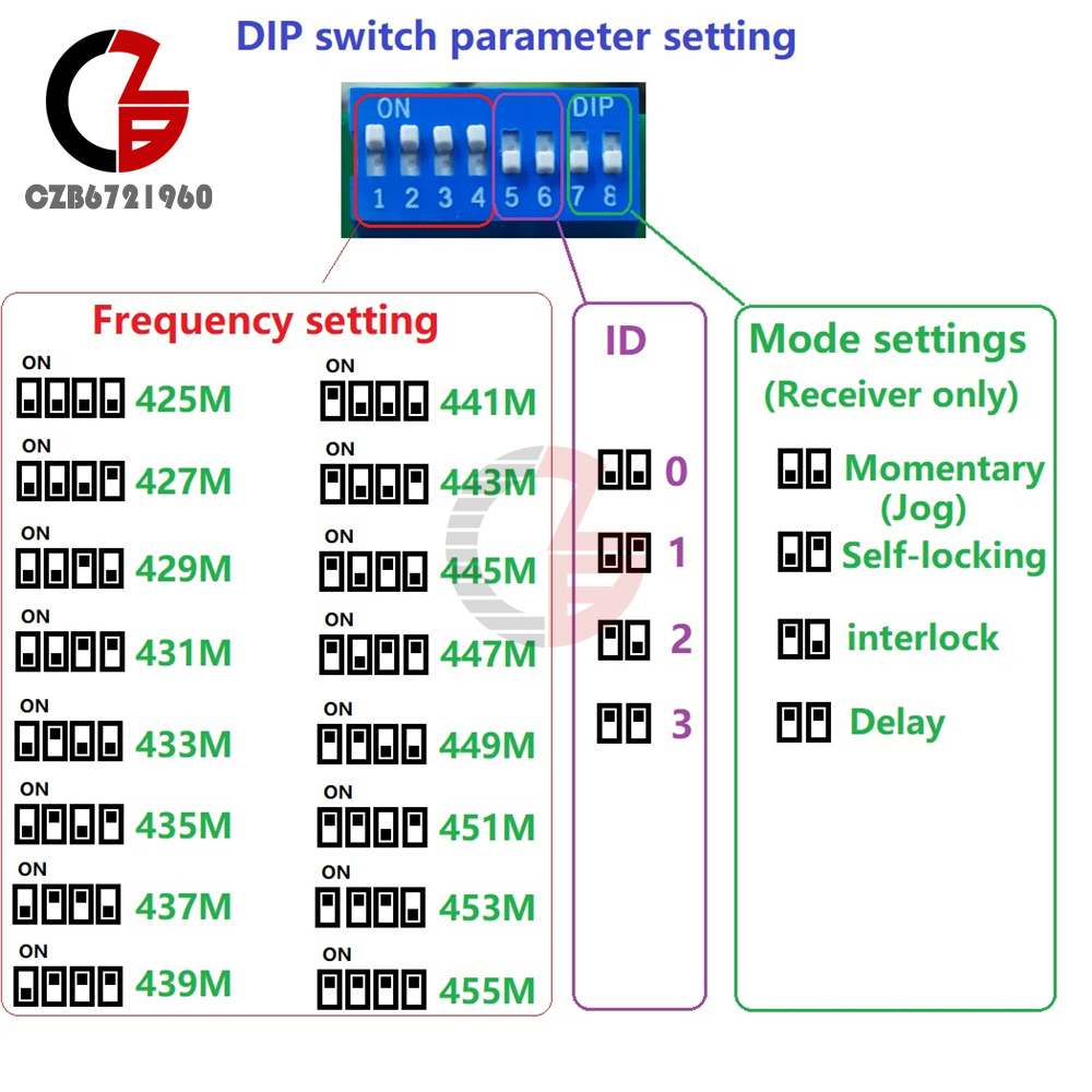 4. Working frequency band: 425~455MHz (can be set by DIP switch)