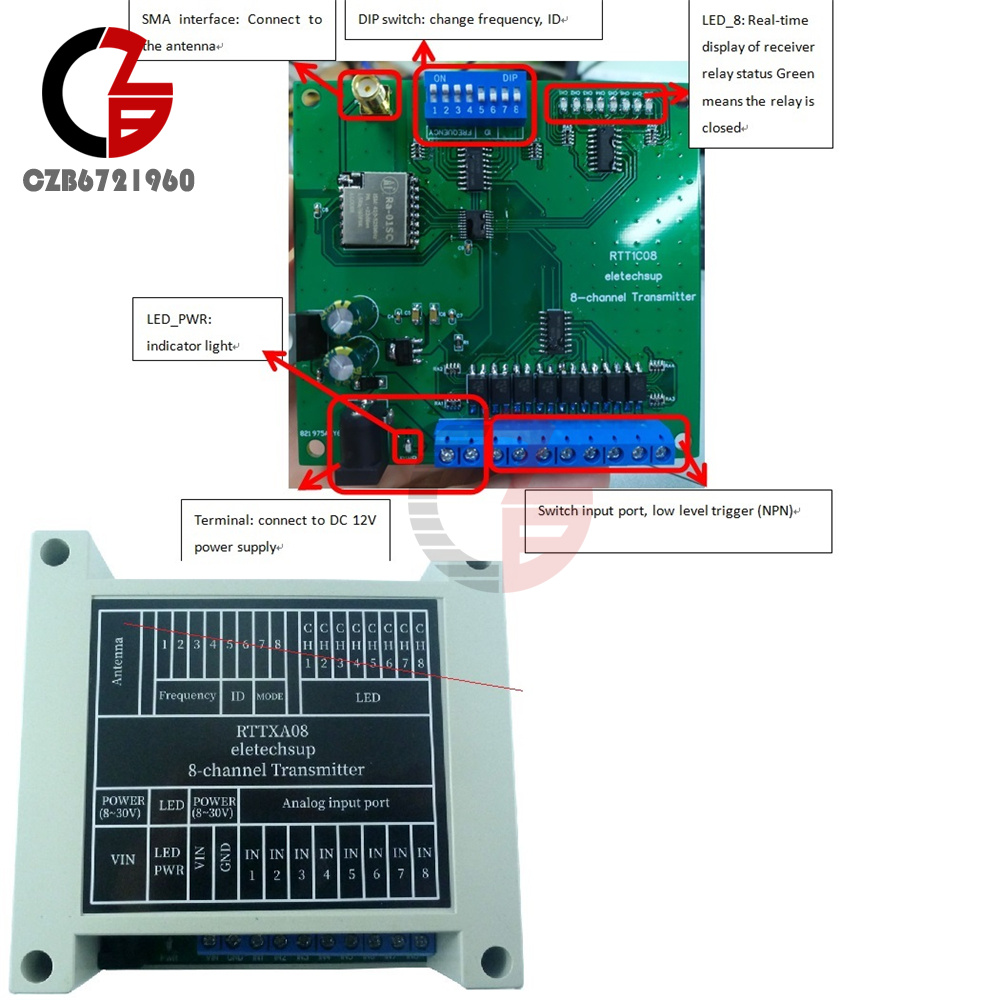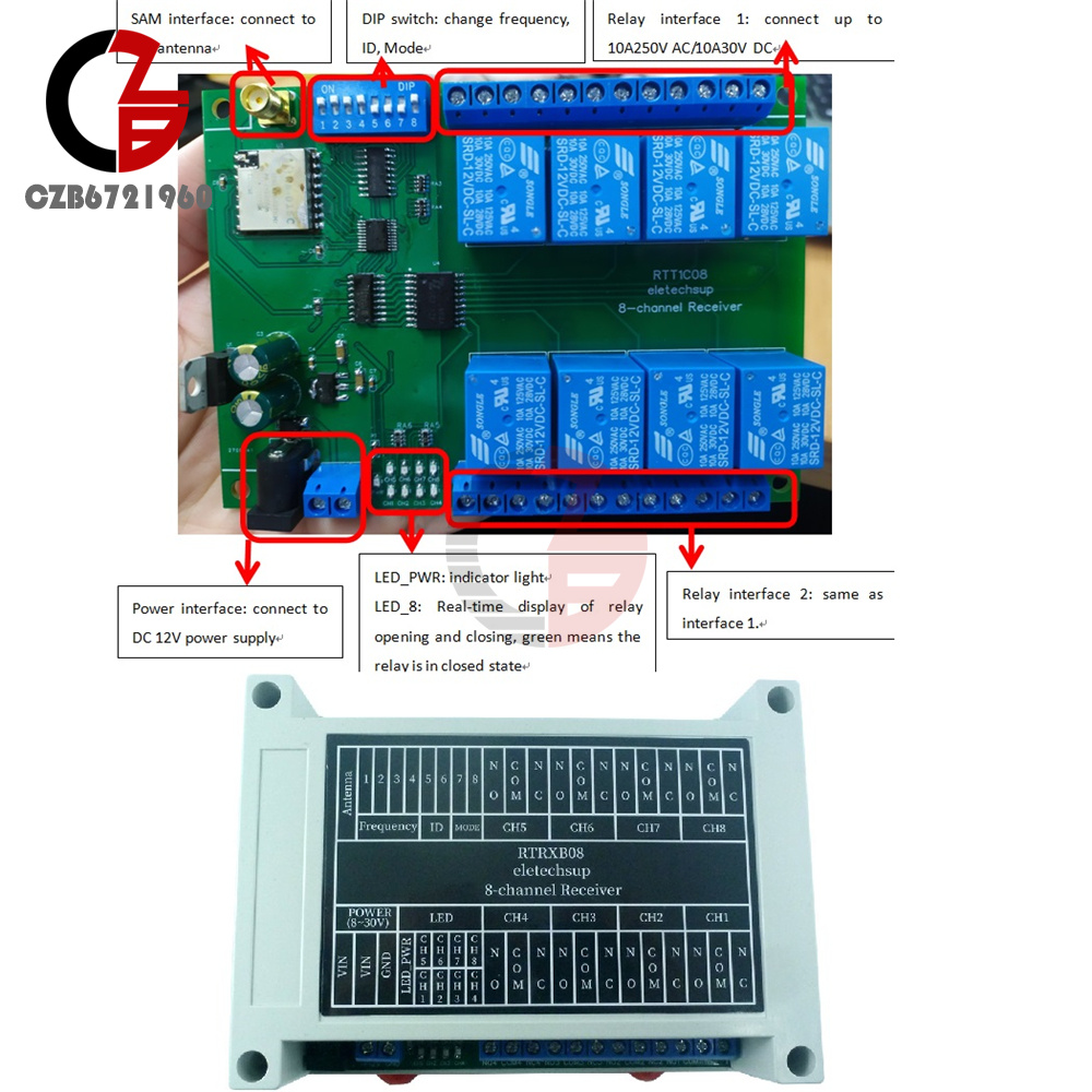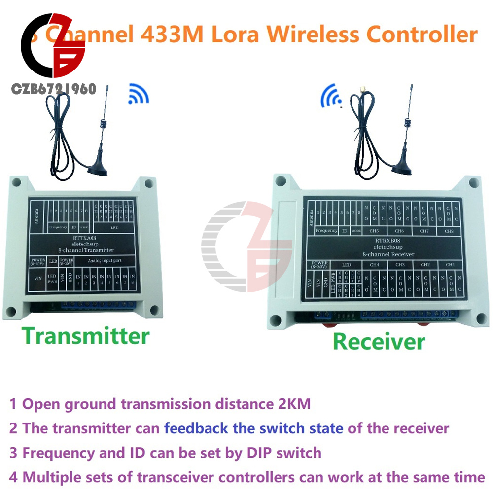 8ch 433M Lora remote control feedback point-to-point wireless IO switch relay module for smart home PTZ